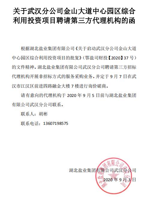 關(guān)于武漢分公司金山大道中心園區(qū)綜合利用投資項目聘請第三方招標代理機構(gòu)的函.pdf